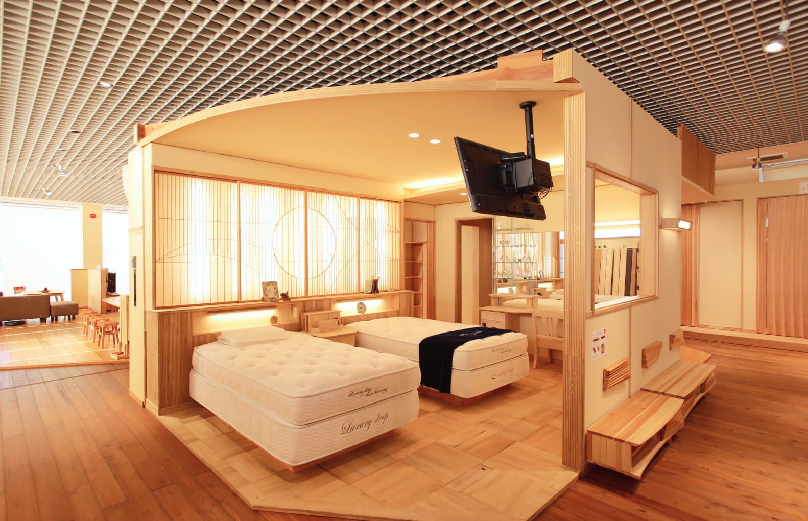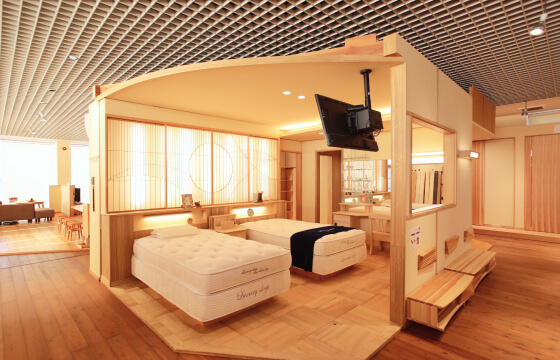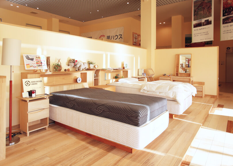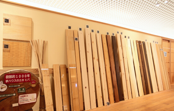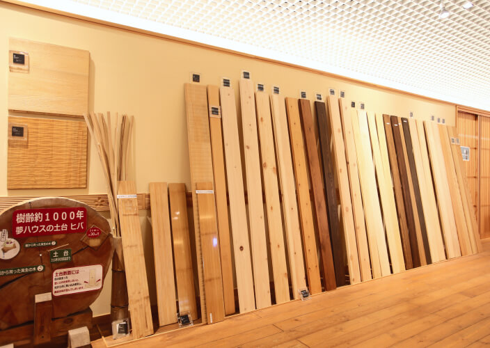 最新の設備や建材、開発中の商品をはじめ、キッチン、ソファ、寝室、ウォークインクローゼットなど、実際の生活をイメージしながら体験できるフロアです。素材に触れたり、夢ハウスの住まいを五感で楽しんだりすることができます。また、構造材や模型の展示もあり、見どころが盛りだくさんです。
